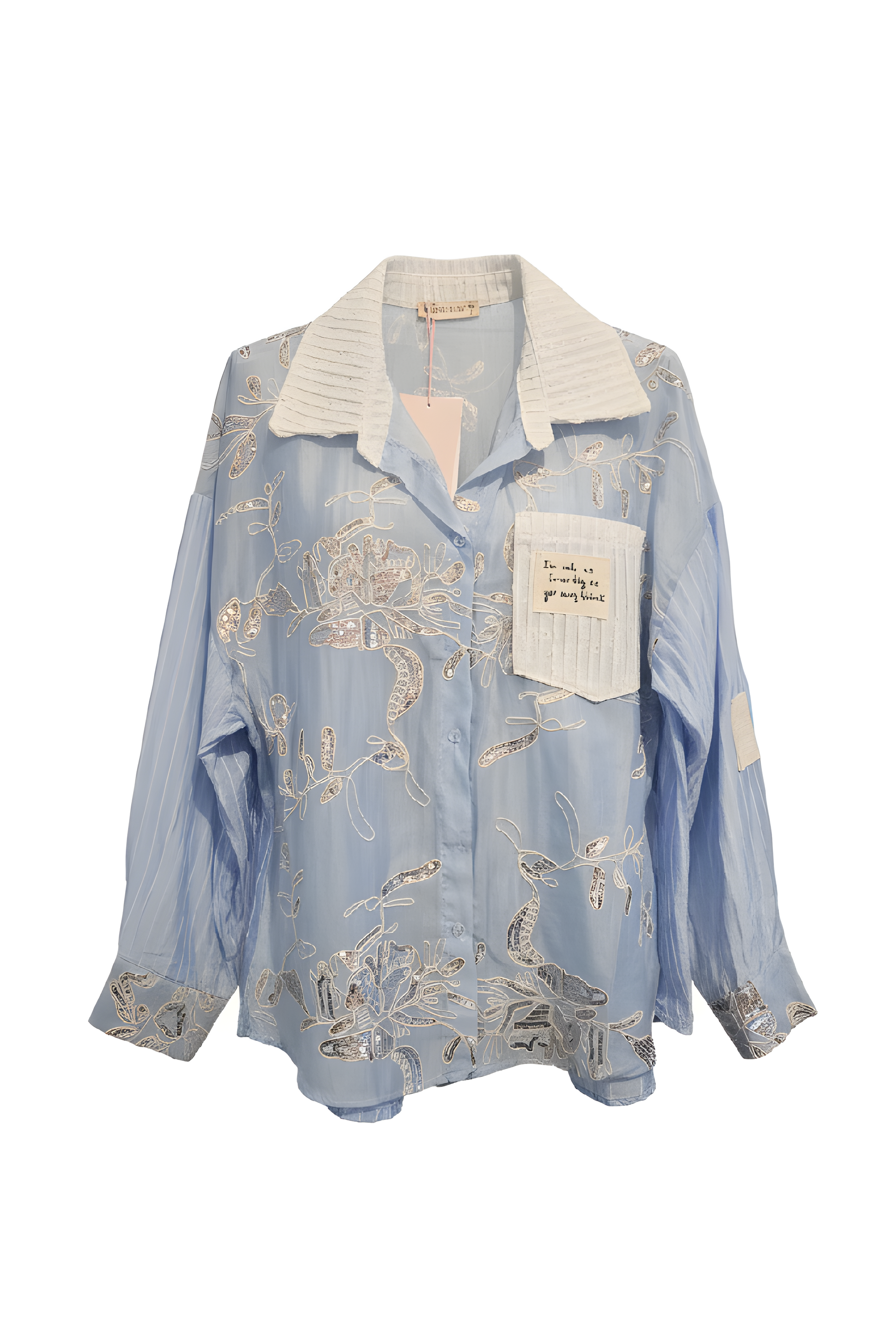 Die durchsichttige Hemdbluse mit Glitzer und Stoff-Anschrift-Details vereint sportliche Eleganz. Sie lässt sich vielseitig kombinieren, sei es zu Jeans und Blazer oder zu eleganten Hosen. Diese Vielseitigkeit ermöglicht eine optimale Anpassung an verschiedene Anlässe, wodurch Sie stilvoll auftreten können.